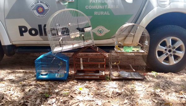 PolÃcia Ambiental resgata pássaros silvestres e aplica multa para criador em Adamantina