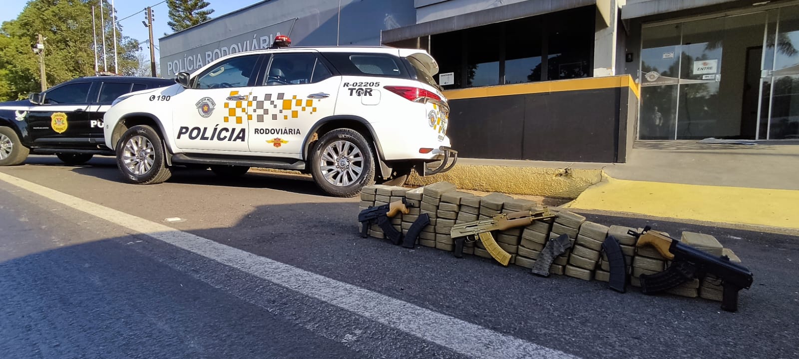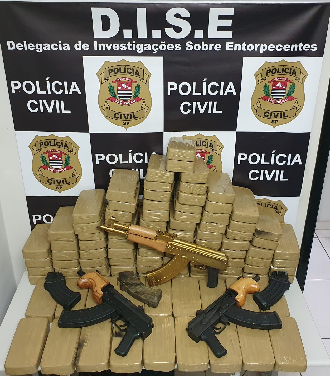 Um homem de 27 anos foi preso em flagrante nesta segunda-feira (7) em Regente Feijó, por posse ilegal de arma de fogo de uso restrito e tráfico de drogas. Funcionário de uma empresa de transporte de cargas, ele levava na cabine do caminhão duas malas com 100 tabletes de cocaína e três 3 fuzis 7,62, AK 47, modelo Draco, um deles de fabricação personalizada.