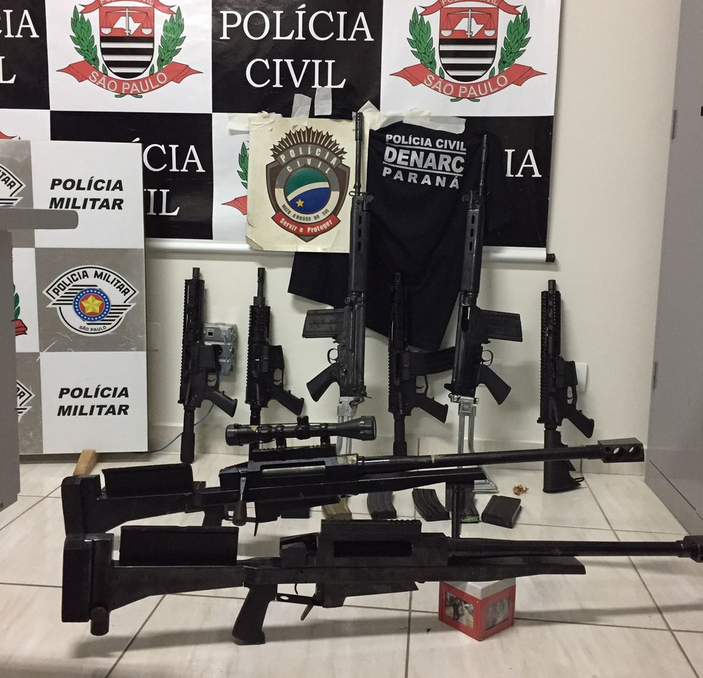 Parte do arsenal e drogas apreendidos na noite de ontem, em um caminhão (Foto: Cedida/Polícia Civil).