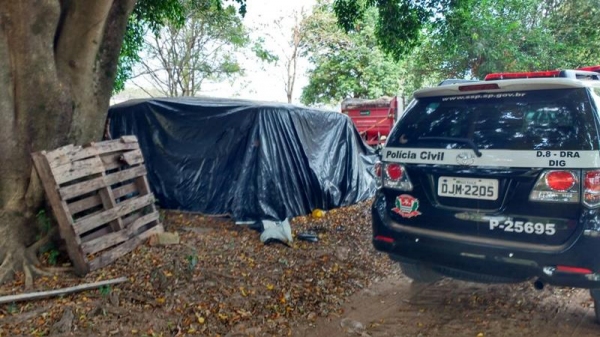Os adubos estavam divididos em 28 big bags, com 1 (uma) tonelada cada, os quais estavam cobertos com lona plástica de cor preta, debaixo de algumas árvores, em uma propriedade rural localizada no Bairro Santa Genoveva, no município de Irapuru.