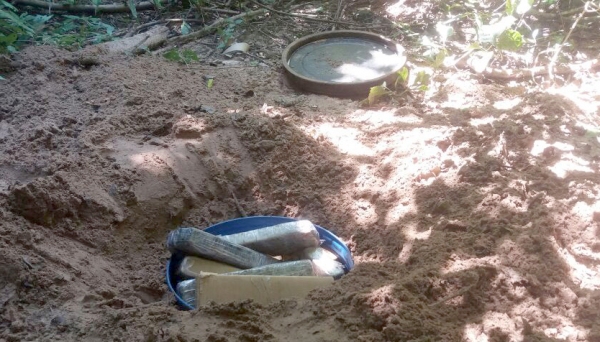 Os 108 tijolos de maconha estavam enterrados, distribuÃdos em 3 tambores plásticos.