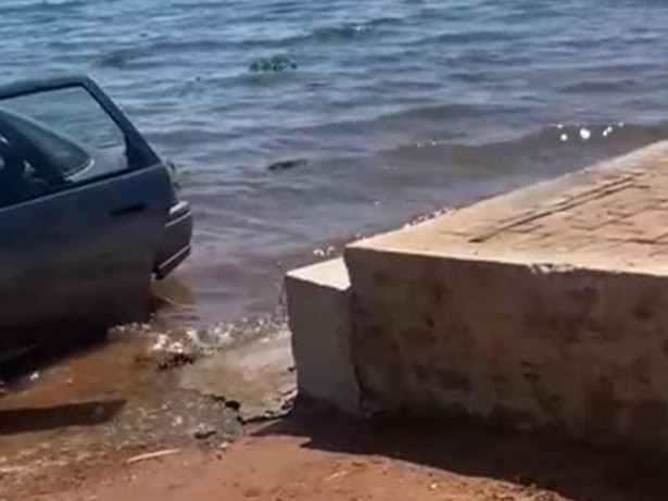 PolÃcia Militar em Paulicéia resgata duas crianças de carro parcialmente submerso no rio Paraná