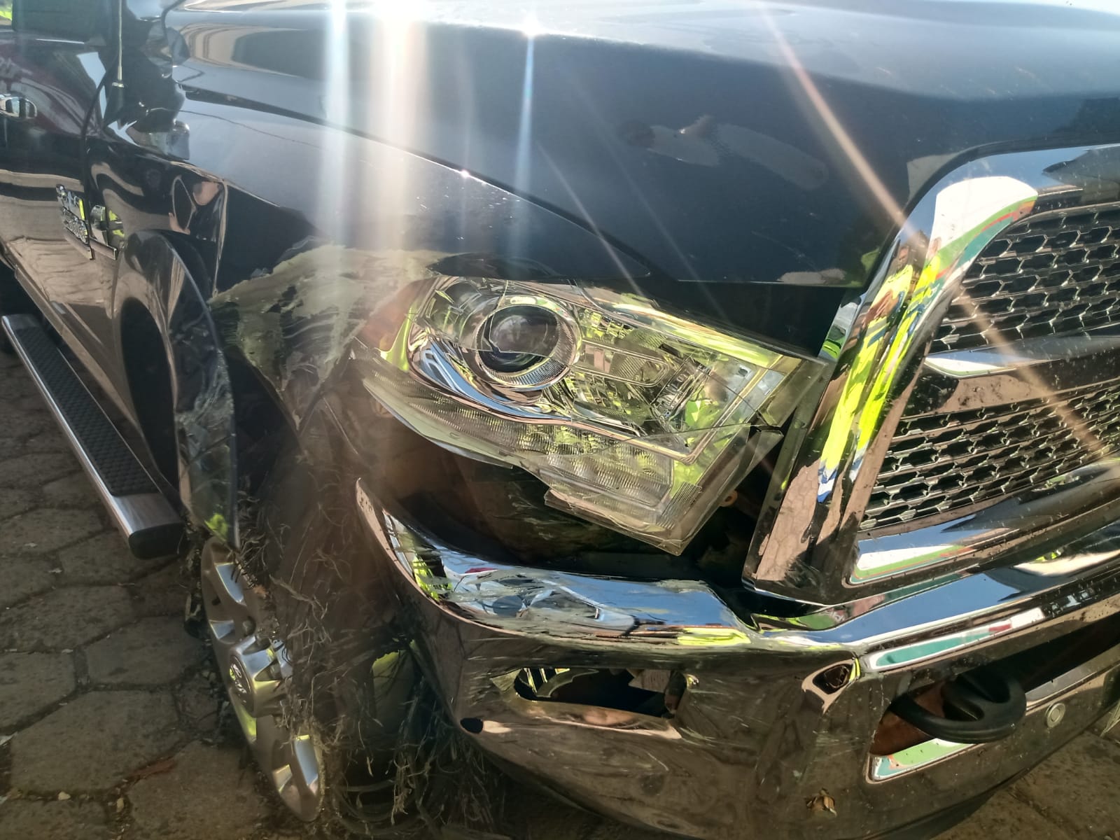 Picape Dodge Ram localizada pelo policiamento, após fugir do local (Divulgação/PM Rodoviária).