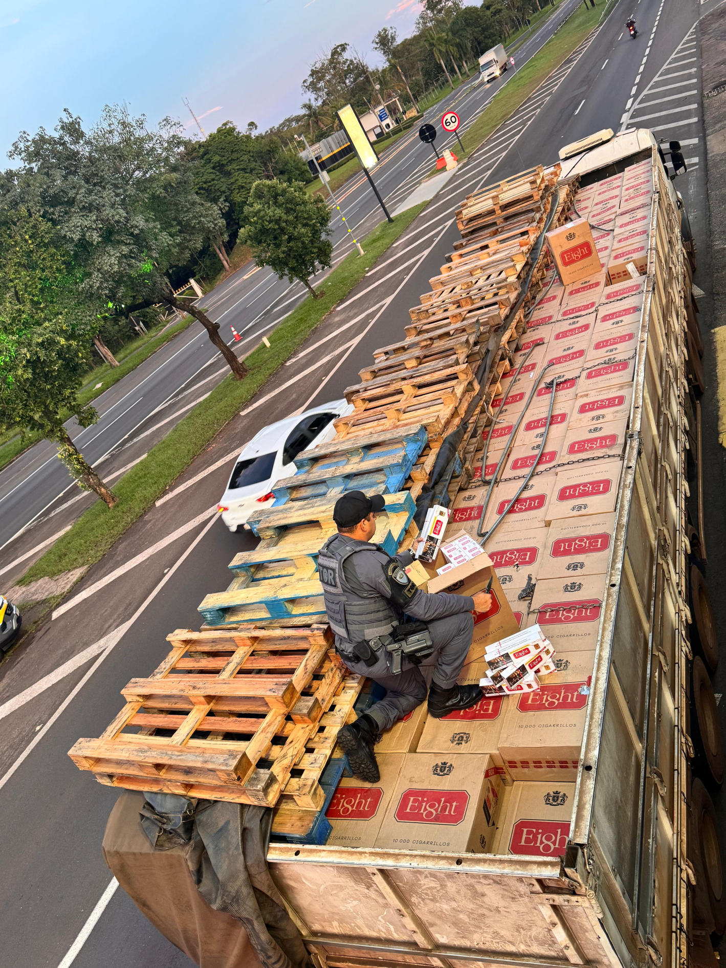 Cerca de 1,2 milhão de maços de cigarros de origem ilegal (Divulgação/PM Rodoviária).