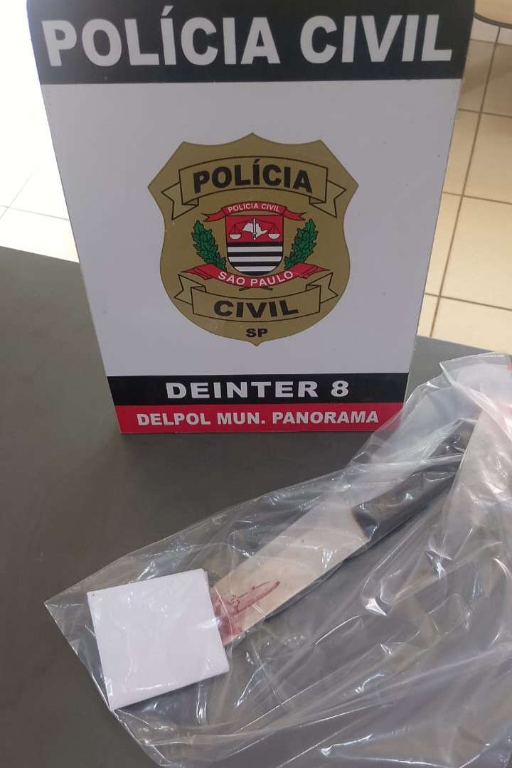 Mulher usou corante vermelho na faca (Cedida/Polícia Civil).