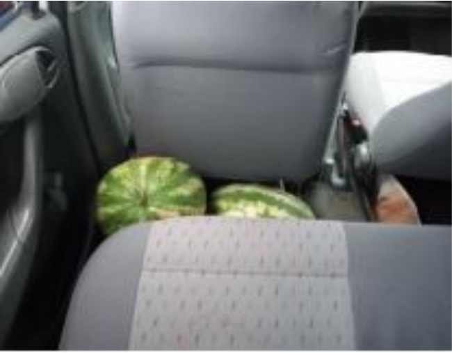 Peritos da Polícia Científica foram acionados para o local e periciaram o veículo, que tinha 17 melancias, das quais 15 no porta malas e duas no assoalho do banco traseiro.