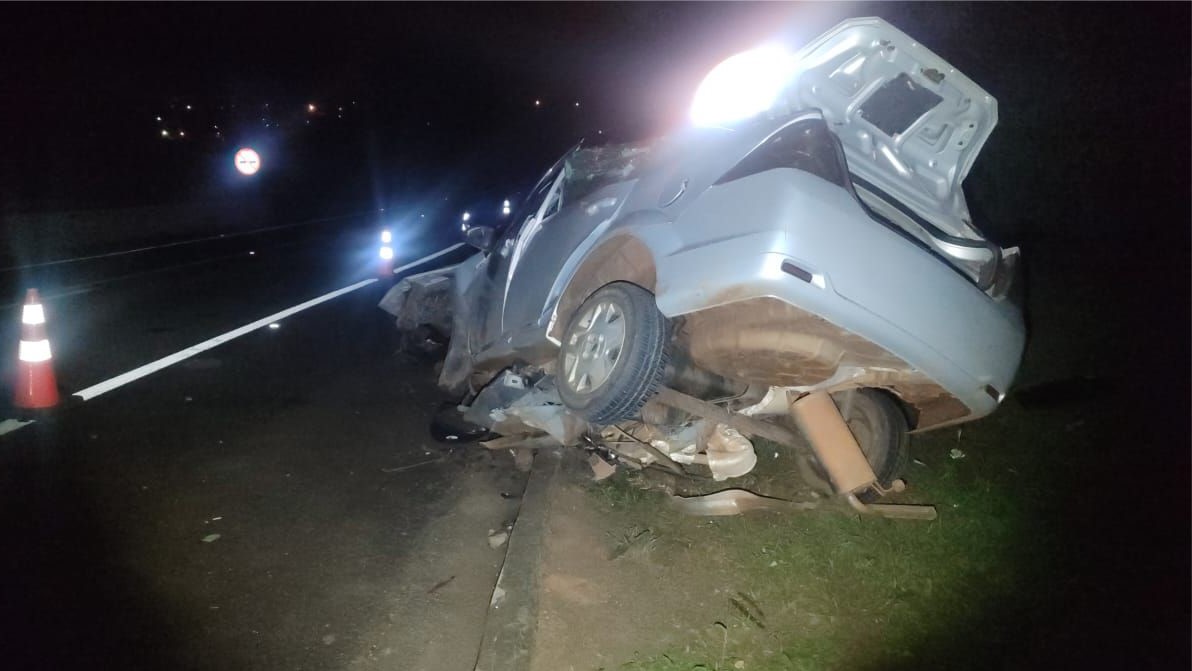 Rapaz de 20 anos morre após carro bater em defensa de concreto e tombar na SP-294 em Pacaembu