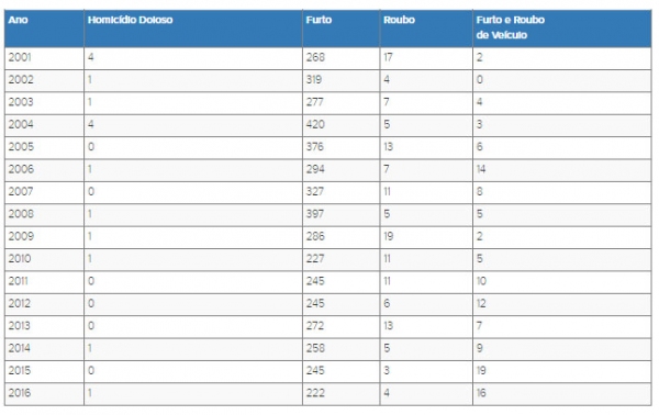 Os números mostram ainda o registro de 1 homicídio (rapaz morto no rodeio, em outubro do ano passado), 2 homicídios culposos em acidentes de trânsito, 5 tentativas de homicídio, 171 ocorrências de lesão corporal dolosa, 191 de lesões corporais culposas por acidente de trânsito, 9 lesões corporais culposas com outras origens e 6 estupros.