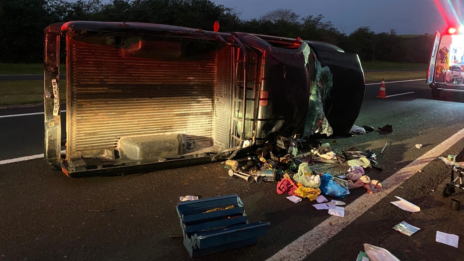A caminhonete capotou e ficou imobilizada na pista contrária, pela faixa de rolamento da direita. Conforme divulgou a PM Rodoviária, o condutor não fazia o uso do cinto de segurança.
