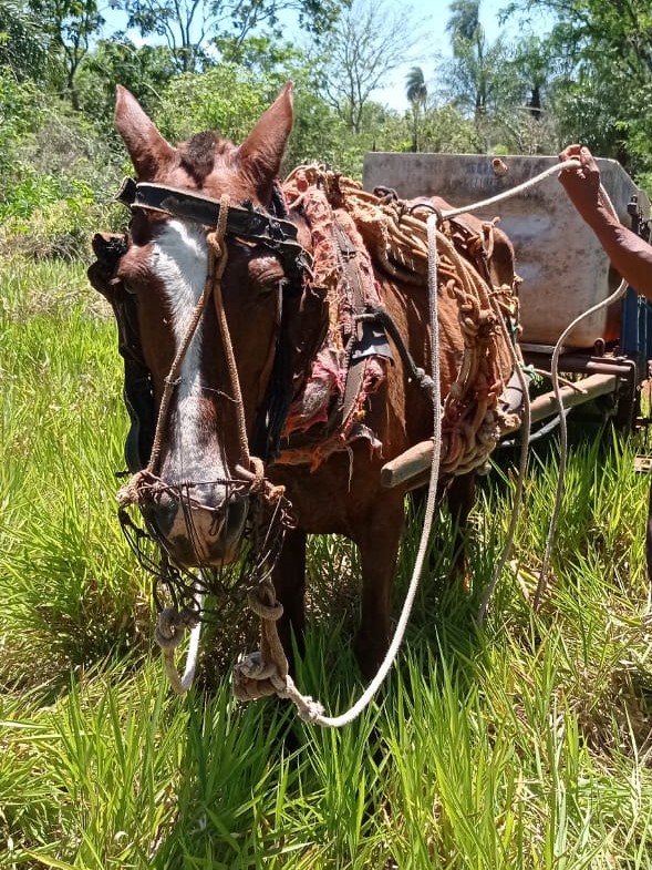Nesta sexta-feira (4) uma equipe da Polícia Militar Ambiental realizou atendimento à denúncia de maus tratos a animal doméstico (égua), na qual o animal estaria sendo colocado a trabalhar em condições inadequadas, puxando uma grade artesanal com peso superior ao suportado pelo equino.