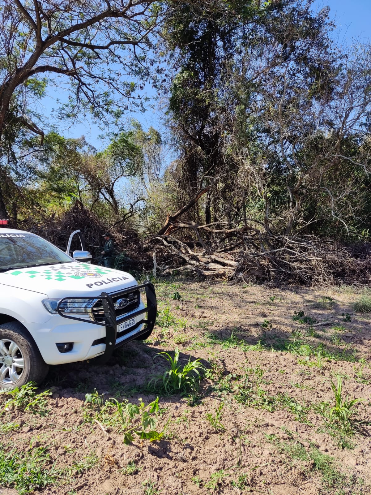 Conforme o policiamento foi constatado o desmatamento de 0,1292 hectares situado em área comum, 0,0223 hectares em área de preservação permanente (APP) e a supressão de 34 árvores nativas isoladas, sendo elaborados em desfavor do proprietário três Autos de Infração Ambiental (AIA).