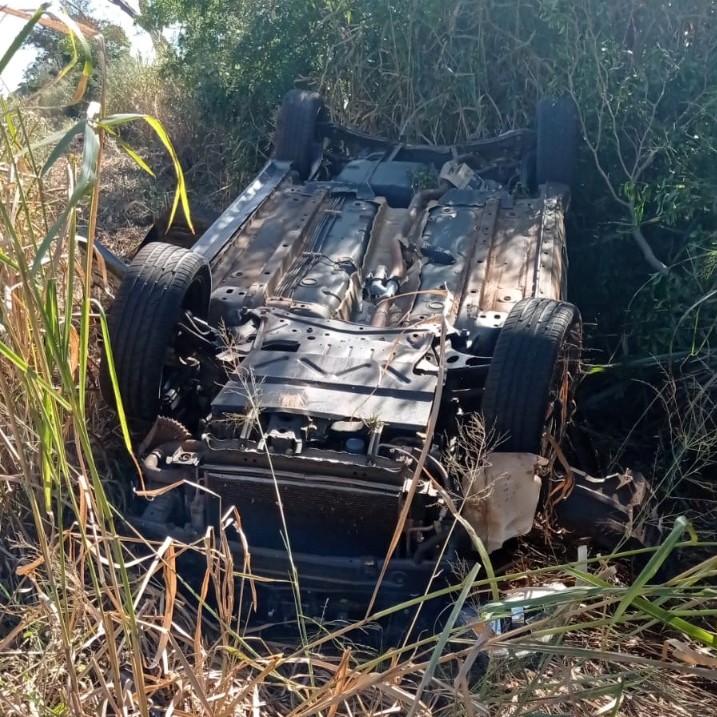 Veículo capotou na rodovia (Cedida).