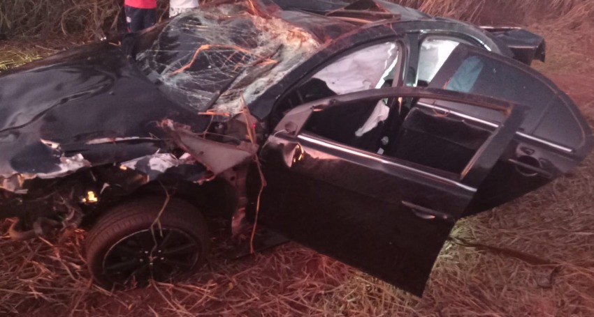 Condutor foi arremessado no capotamento (Cedida).