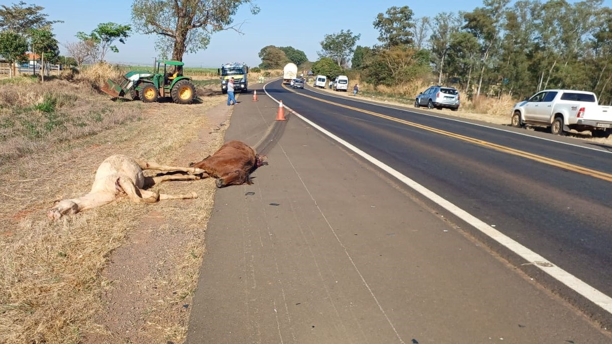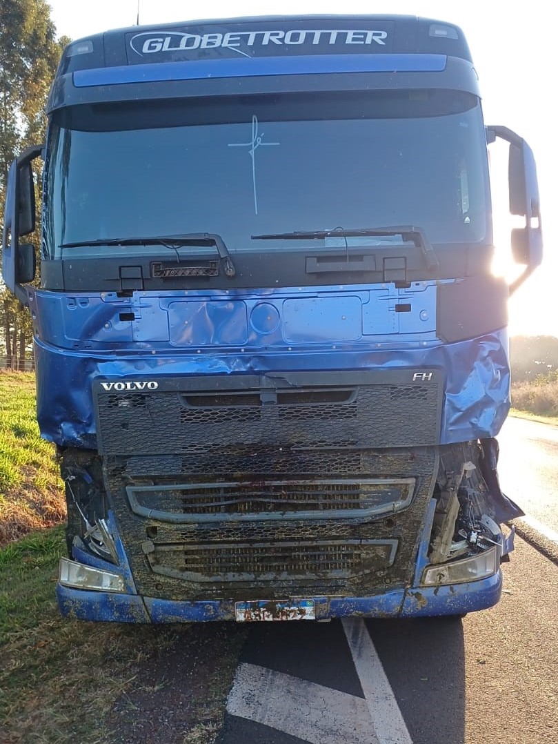 De acordo com a Polícia Militar Rodoviária, o registro da ocorrência foi às 5h45, quando a equipe do policiamento foi acionada para atendimento do sinistro de trânsito sem vítima, do tipo “atropelamento de animal”, envolvendo um caminhão Volvo/FH 540 e uma van para transporte de passageiros.
