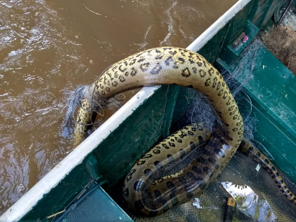 Em uma das redes, segundo a equipe, foi encontrada uma cobra da espécie sucuri que estava morta devido o enforcamento nas malhas. Haviam também peixes que foram capturados pelos pescadores, e por estarem vivos foram devolvidos ao habit natural.