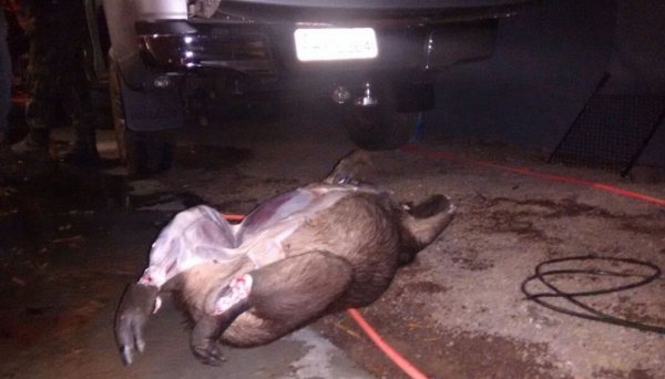 Segundo a Polícia Ambiental, um animal já havia sido cortado em vários pedaços e o couro e barrigada estavam acondicionados em um saco plástico. O outro animal encontrava-se inteiro. A espingarda utilizada também estava no local.
