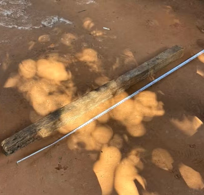 Pedaço de madeira usado no crime (Cedida/Polícia Civil).