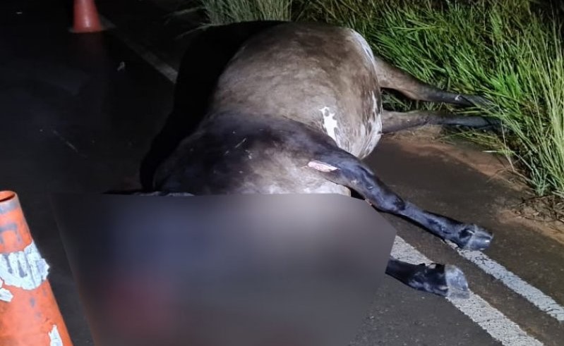Motorista não conseguiu desviar do animal que estava solto na pista.