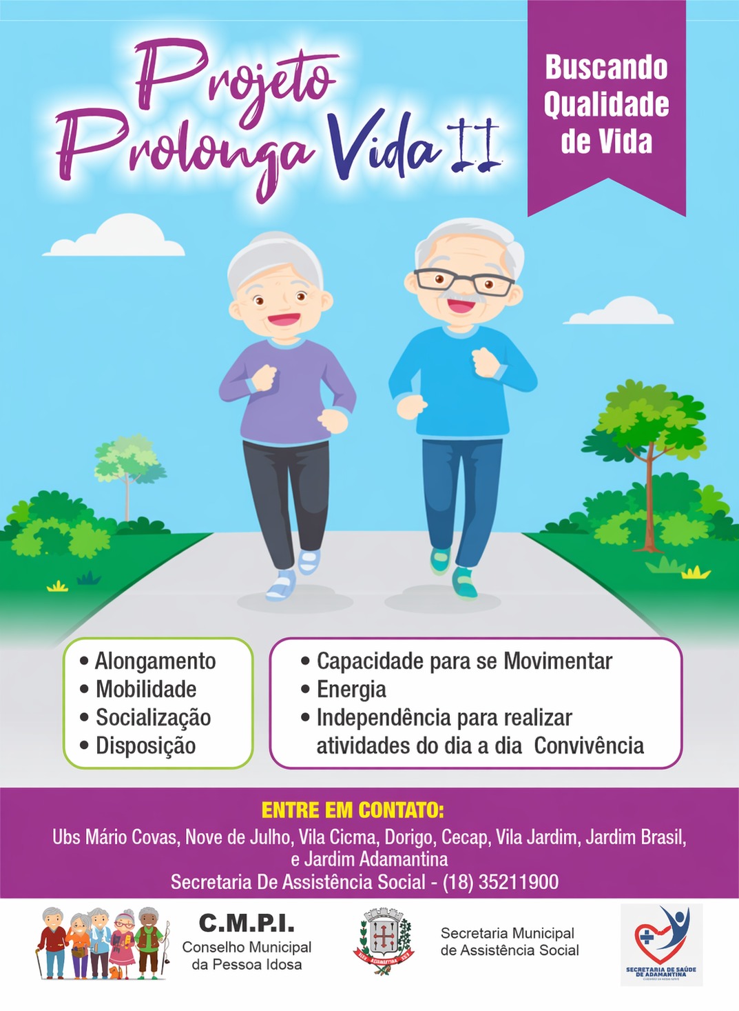 A Prefeitura de Adamantina, por meio da Secretaria de Assistência Social e de Saúde, em parceria com o Conselho da Pessoa Idosa, abriu inscrições para que novos idosos participem do Prolonga Vida II.