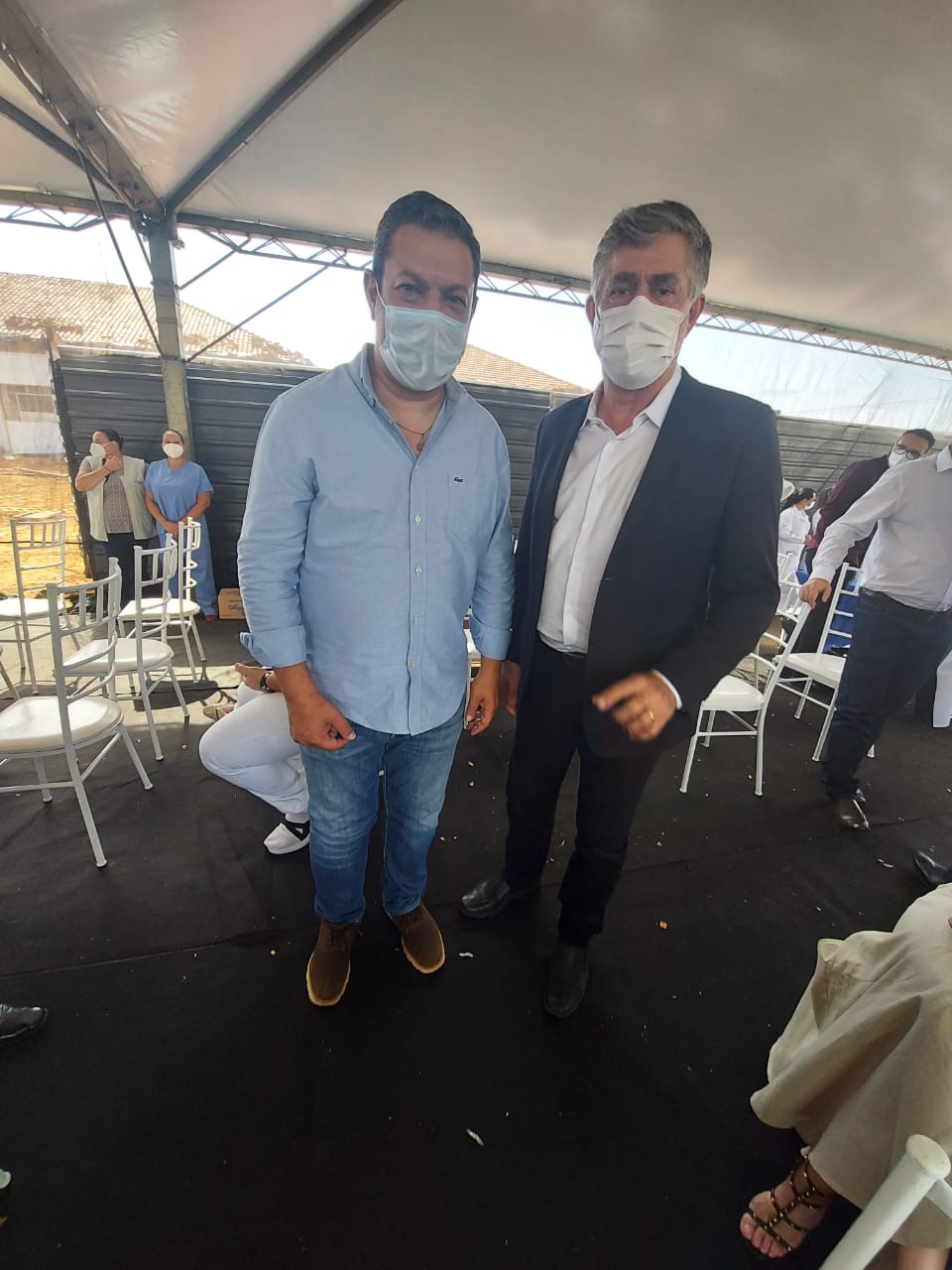 O prefeito Márcio Cardim e o secretário de saúde, Gustavo Taniguchi Rufino, participaram no sábado (23), de uma solenidade de lançamento da pedra fundamental do Pronto Socorro de Rio das Pedras.