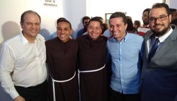 Ministro Ricardo Barros, Frei Jacó, Frei Mateus, deputado federal Fausto Pinato e o juiz Carlos Gustavo Urquiza Scarazzato, da 2ª Vara da Comarca de Adamantina (Foto: Reprodução).