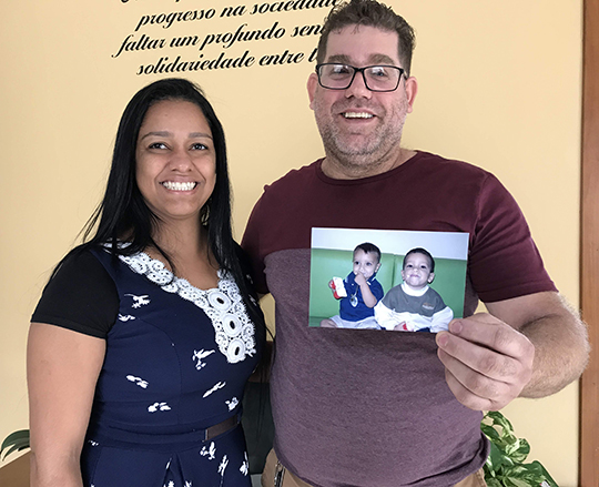O casal Marieli e Rodrigo Campanha tiveram apoio integral da Arca nos cuidados com os filhos (Foto: Siga Mais).