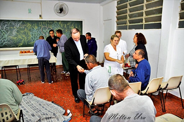 Ao final, o Bispo Diocesano foi convidado a ser padrinho do PAI Nosso Lar, e recebeu material confeccionado pelos internos. Ao final fez uma oração com todos da equipe administrativa e técnica, além de acolher os necessitados internados.