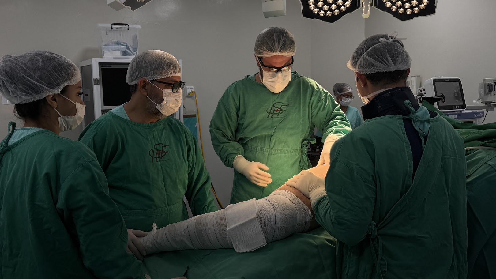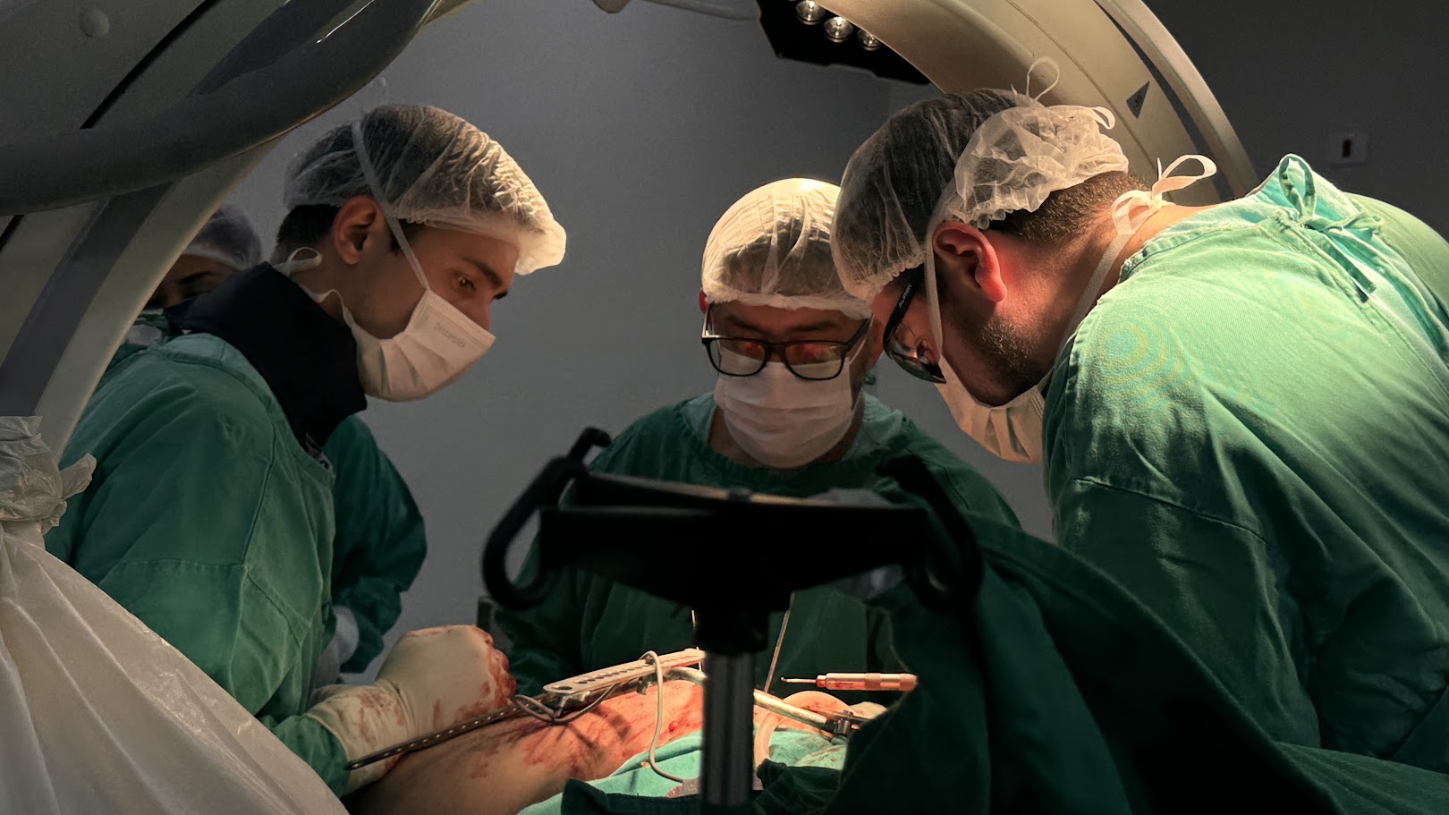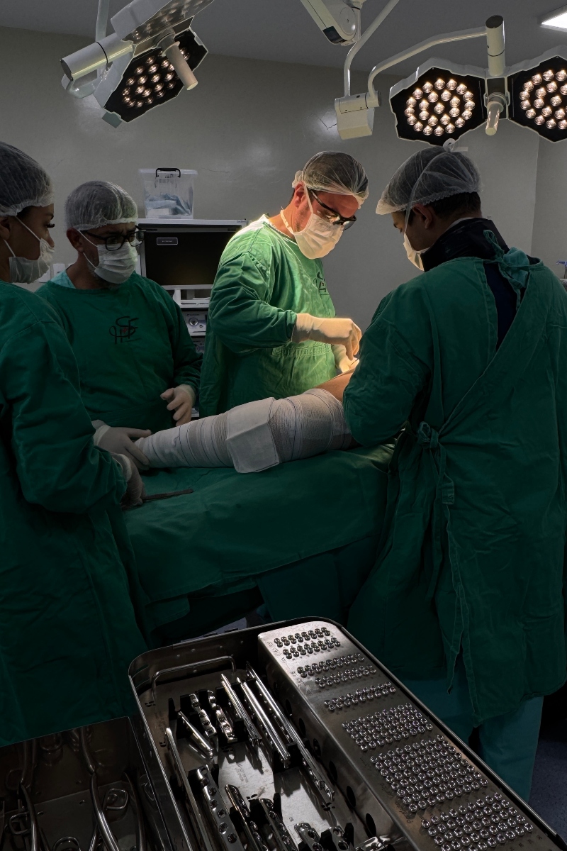 O procedimento foi conduzido pelo Dr. Tiago Lucas Pádua, ortopedista e traumatologista com aperfeiçoamento avançado em cirurgias de quadril, com a participação do médico Dr. Vitor Augusto Vilhegas, além das equipes de anestesia, enfermagem e do serviço de imagem.