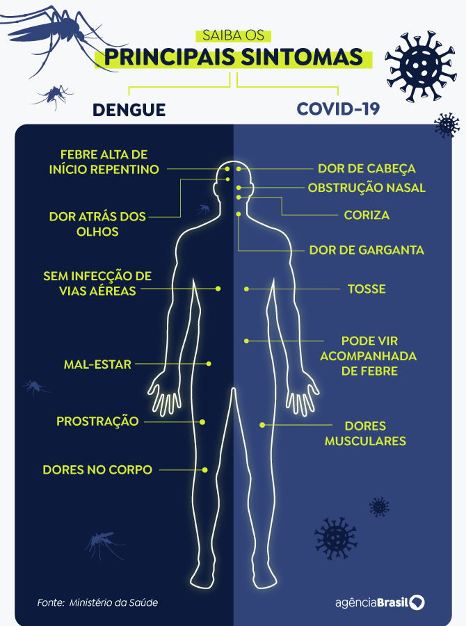 Na dengue, o sintoma mais clássico é a febre alta, que aparece abruptamente no começo da infecção. Já a covid tem como característica os sintomas respiratórios. “Vale lembrar que nas duas doenças existem também os casos assintomáticos”, alerta a profissional.