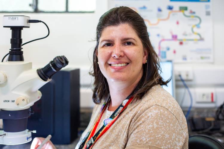 A pesquisadora Flávia Virginio (Foto: Renato Rodrigues/Comunicação Butantan).