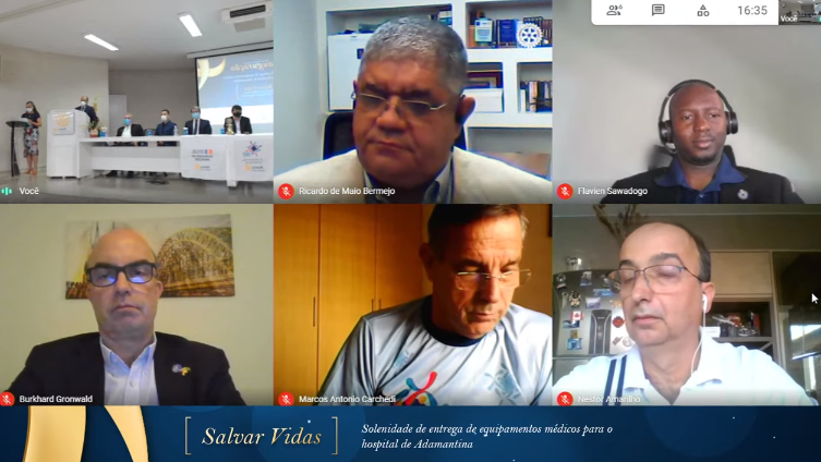 A logística do evento híbrido foi realizada pela UniFAI. No auditório, participaram presencialmente os representantes do Rotary Club de Adamantina, autoridades municipais e representantes da Santa Casa local, recepcionados pelo presidente do Rotary adamantinense, Francisco Lupo. Toda a programação teve tradução simultânea. Veja como foi: