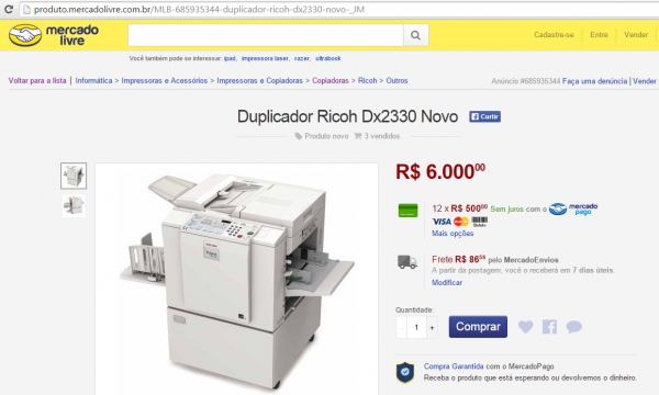 Com o valor pago para os serviços de cópias, deste único empenho, seria possível adquirir uma máquina nova, de alta performance, ou mais de um equipamento com capacidade inferior. Numa rápida pesquisa realizada pela redação do SIGA MAIS, no site Mercado Livre, uma copiadora nova, da marca Ricoh, modelo DX2330, com capacidade de imprimir 90 páginas por minuto, poderia ser adquirida por R$ 6 mil.