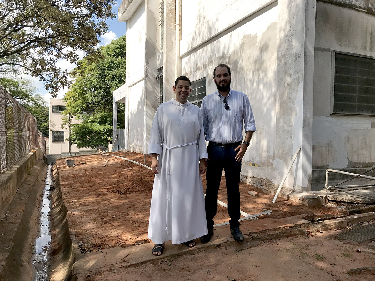 Frei Mateus e o juiz Carlos Scarazzato vistoriam melhorias (Foto: Siga Mais).