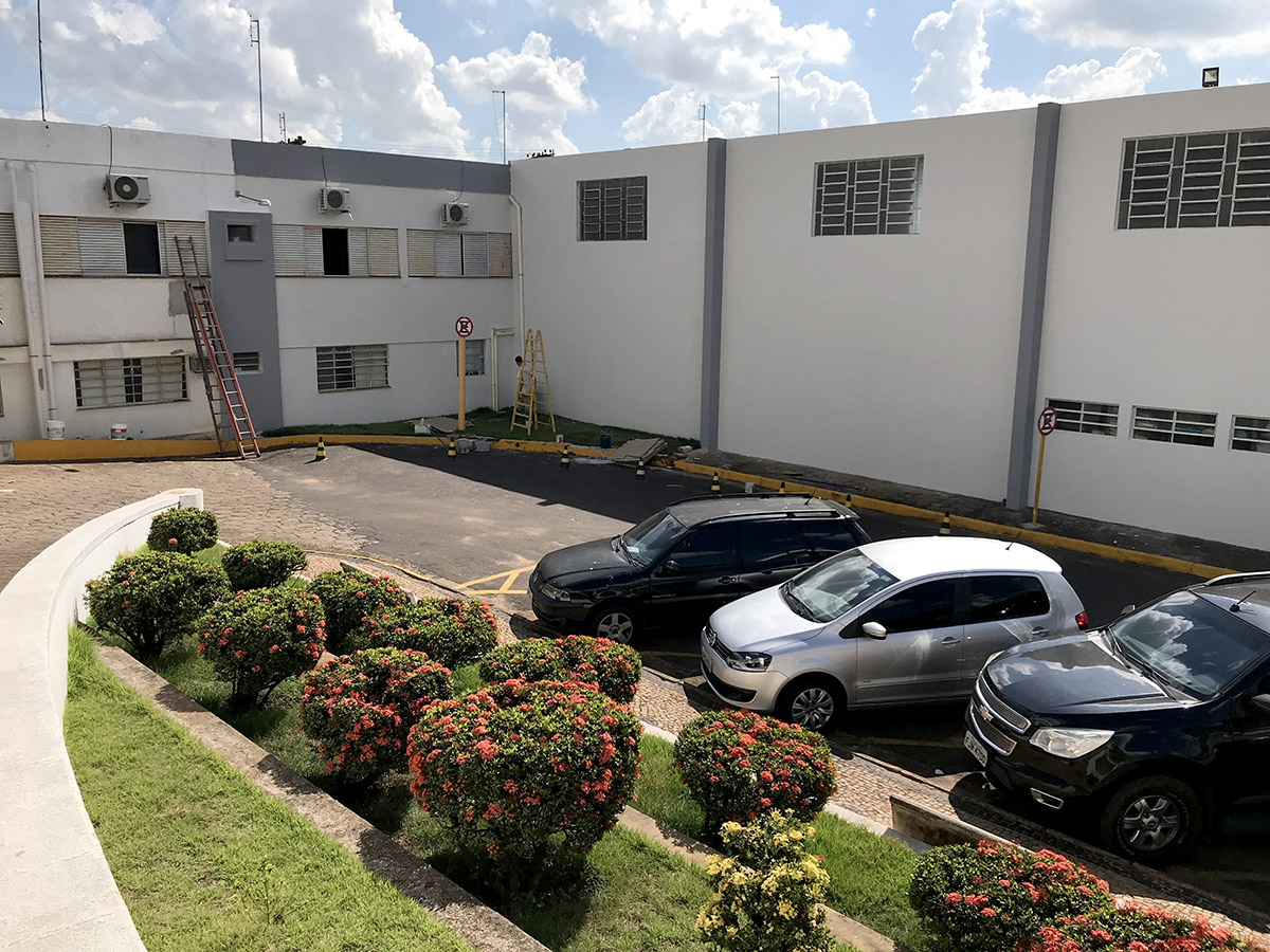 Na área externa, os trabalhos foram iniciados no bloco onde estão o pronto-socorro e o banco de sangue, com execução calçamento, a recuperação do pavimento sextavado do estacionamento com o objetivo de torná-lo acessível – sobretudo à circulação de macas e cadeiras de rodas – e a aplicação da nova pintura.