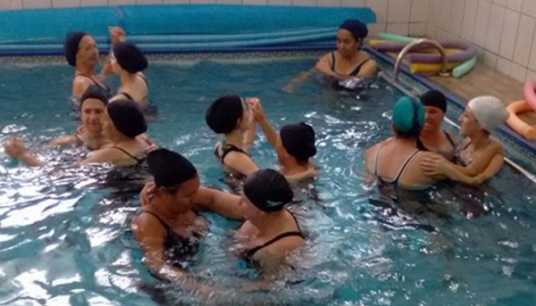 Os alunos elaboraram uma dança dentro da piscina com os pacientes do setor, com o objetivo de promover um dia alegre e descontraído aos pacientes.
